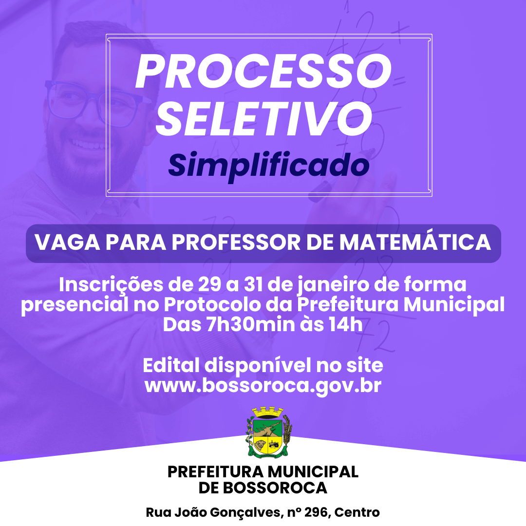 PROCESSO SELETIVO SIMPLIFICADO PARA CONTRATAÇÃO DE PROFESSOR DE MATEMÁTICA